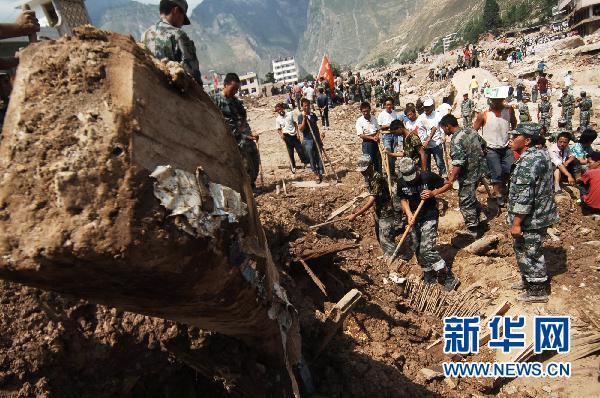 8月9日,蘭州軍區某部官兵在甘肅舟曲縣一處受災點進行救援。當日是甘肅省甘南藏族自治州舟曲縣特大山洪泥石流災害發生的第二天,來自蘭州軍區某部的3000多名官兵,與來自甘肅、四川等地的武警官兵、公安干警抵達災區,并積極投入救援和群眾安置工作。烈日下,部隊官兵、公安干警、當地干部群眾齊心協力,展開一場生命大營救。新華社記者張宏祥攝