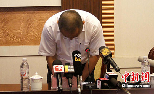 8月26日下午,有關方面在伊春舉行“8·24”伊春空難情況通報會。會上河南航空公司監事會主席劉航向全社會道歉。中新社記者 崔顏鋒 攝