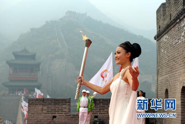 第16屆亞洲運動會火種9日上午在居庸關長城北烽火臺成功采集。