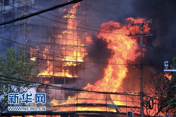 資料圖片:這是11月15日拍攝的火災(zāi)現(xiàn)場。當(dāng)日14時(shí)許,上海市中心膠州路靠近余姚路附近的一座約30層的公寓樓發(fā)生火災(zāi)。新華社發(fā)