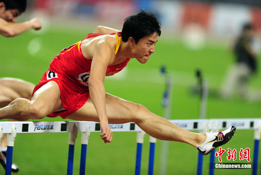 11月24日,廣州亞運會男子110米欄決賽,劉翔以13秒09的成績奪得金牌,這一成績打破了亞運會紀錄。劉翔以一場酣暢淋漓的勝利宣告了自己的回歸。中新社記者 陳文 攝