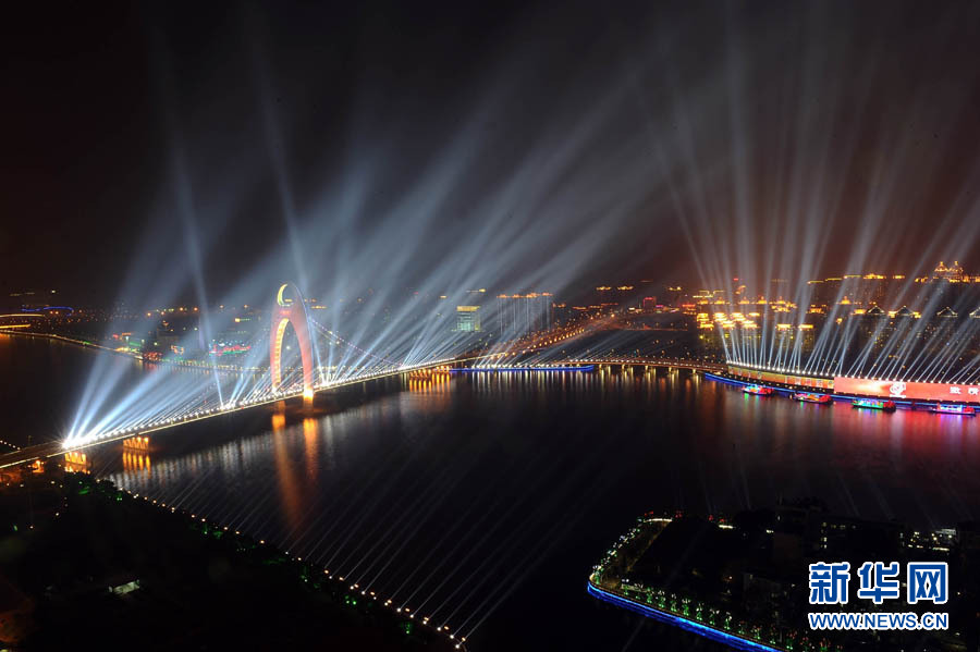 11月27日,珠江畔燈火璀璨。當日,第16屆亞洲運動會閉幕式即將在廣州海心沙島舉行。 新華社記者郭大岳攝