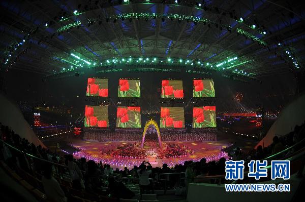 20時許,閉幕式正式開始。在雄壯的中華人民共和國國歌聲中,鮮艷的五星紅旗冉冉升起。