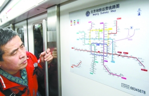 昌平線、亦莊線等五條新地鐵線今日將開通運營。昨天,正在運營的地鐵列車各車廂內紛紛換上了新的地鐵線路圖,詳細標明了各站名稱和換乘地點,引起乘客的普遍關注。記者 李繼輝攝