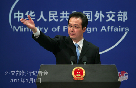 2011年1月6日,外交部發言人洪磊主持例行記者會。