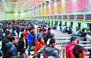 旅客們在廣州火車站售票廳排隊買票。記者喬軍偉 攝