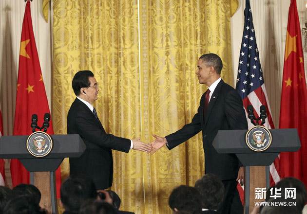 1月19日,中國國家主席胡錦濤同美國總統奧巴馬在白宮共同會見記者。新華社記者 蘭紅光 攝