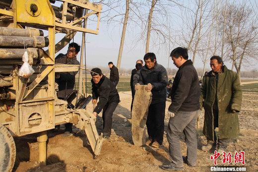 圖為山東省成武縣抗旱打井服務隊正在地頭打井,為實現“以河補源、以井保豐”奠定基礎。楊東亮 攝