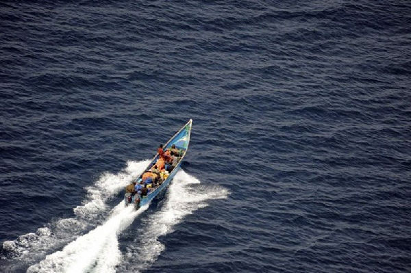 14時30分,嘉寧山輪位于0645.7N/06925.7E,值班二副發現正船頭7海里處有一艘航向不穩定的船舶正在逼近。海盜!高度警惕的值班船員們的第一個反應便是遇到海盜了。在極短的時間里,判斷出這是一艘海盜母船,正快速向嘉寧山輪駛來。情況危急,船長周澤彬立即拉響了保安和遇險警報,全船各就各位,嚴陣以待。