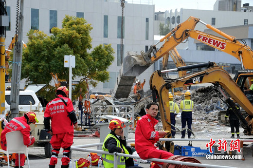 2011年2月26日,新西蘭克萊斯特徹奇,中國救援隊在CTV大樓展開救援工作。除廢墟清理工作外,中國救援隊還將利用生命探測設備搜尋幸存者。
