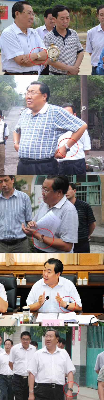 就在網民強烈譴責該官員的同時,一組關于該官員每個場合換一款疑似世界品牌手表的圖片也被曬到了網上。