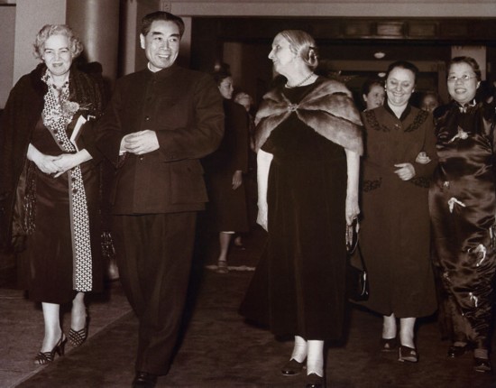 圖為1956年,鄧穎超(右1)和周恩來同出席國際民主婦女聯合會理事會的客人在一起。