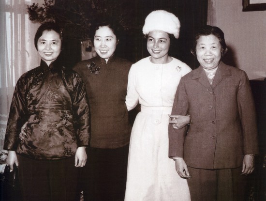 建國初期,新中國外交剛剛起步。外國領導人帶夫人訪華時,中國常常沒有領導人的夫人參加接待。圖為1962年,我國第一代夫人外交的幾位代表人物:周恩來夫人鄧穎超(右1)、劉少奇夫人王光美(右3)、陳毅夫人張茜(右4),與柬埔寨王國首相西哈努克夫人莫尼克合影。