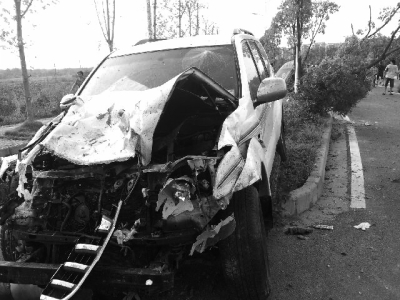 鄧晨峰說,肇事車沖了約50米遠,放倒一排綠化樹,一直沖到綠化帶的末端。撞停之前,該車還追尾路邊的一輛雪佛蘭轎車。