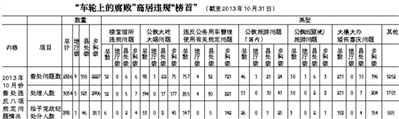 昨日,中紀委監察部官網公布10月份“各省區市查處違反中央八項規定精神問題匯總表。匯總表仍將違反八項規定的案件分為違反公車使用規定、公款大吃大喝、大操大辦婚喪喜慶等七大類。高居違規“榜首”即“發案量”最高的,仍是“車輪上的腐敗”,即違反公車使用規定案件,共計757起。其次是“大操大辦婚喪喜慶”,211起;“公款大吃大喝”,98起。