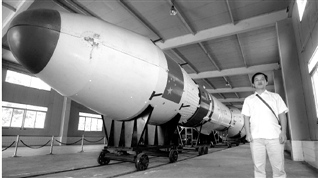 本報記者與搭載嫦娥一號的火箭 林云龍攝