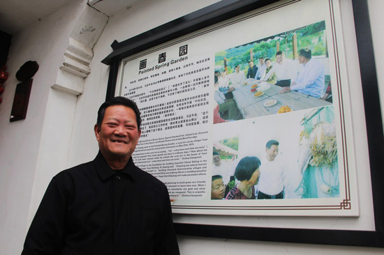袁其忠的農(nóng)家樂門口,掛著與習總書記的合影。每天出入,袁其忠總會想起習總書記前來參觀時的場景。張麗瑋攝