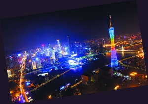 夜景中的廣州塔。