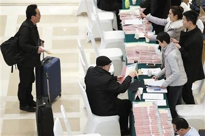 昨日是政協委員報到第一天,記者在北京會議中心看到,委員在經過安檢后進入報到大廳,按照各自界別進行簽字、領資料的工作流程,之后,一些外地委員直接入住會議中心。