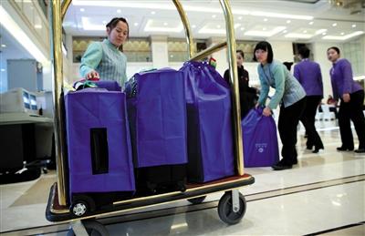 一些外地委員報到后直接入住會議中心,工作人員將委員們的行李送入房間。