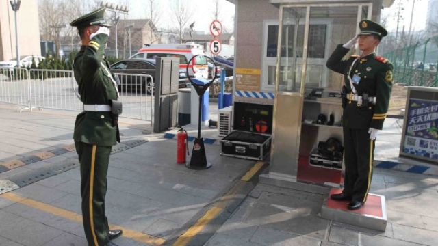 哨兵在交接班。鄭光傲攝
