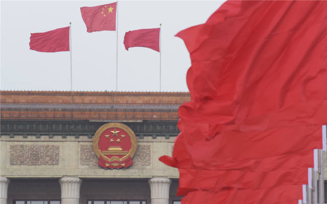 3月5日,天安門廣場上紅旗飄揚。新華社記者 薛玉斌 攝