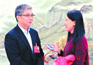 記者采訪全國政協(xié)委員、中國廣核集團有限公司董事長賀禹。 廣州日報記者黎旭陽、莊小龍 攝