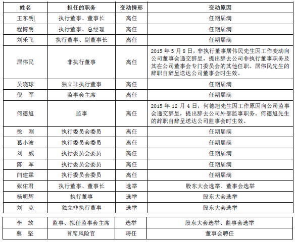 2015年中信證券董監高變動情況一覽: