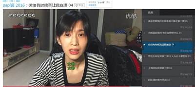 Papi醬視頻下架前在優酷的訂閱人數為102.4萬,約有16條熱門視頻。