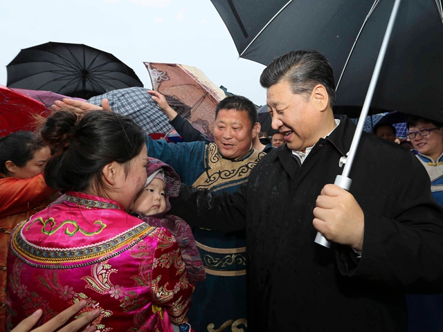 24日下午,習近平總書記來到黑龍江同江市八岔村,看望赫哲族群眾。赫哲族是我國人口較少民族之一,全國有5300多人。在村文化活動中心,習近平饒有興趣地參觀了赫哲族民俗展。一些村民身著民族服裝,正在學習赫哲族特有的伊瑪堪說唱藝術。大家簇擁到總書記身邊,唱了一曲又一曲。習近平邊聽邊拍手打起節拍。一位5歲的小朋友用稚嫩童聲為總書記唱了一首赫哲族歌謠。