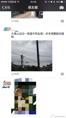 國家海洋局東海分局7日晚通報(bào),當(dāng)日,中國海監(jiān)一架直升機(jī)在執(zhí)行飛行任務(wù)返航途中失聯(lián)。傍晚,搜尋人員在舟山朱家尖大青山山頂發(fā)現(xiàn)飛機(jī)殘骸,四位機(jī)組人員被發(fā)現(xiàn)遇難。圖為6月7日,搜救人員前往失事海域搜尋(手機(jī)拍攝)。 新華社發(fā) 圖片來源:新華網(wǎng)