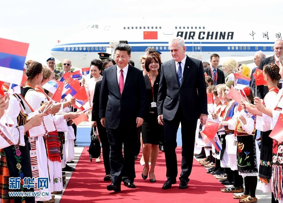 6月17日,國家主席習近平乘專機抵達貝爾格萊德,開始對塞爾維亞共和國進行國事訪問。習近平和夫人彭麗媛在機場受到塞爾維亞總統尼科利奇夫婦的熱情迎接。 新華社記者 饒愛民 攝 圖片來源:新華網