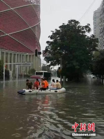湖北武漢市武昌區楚河漢街附近市民劃船出行。 供圖