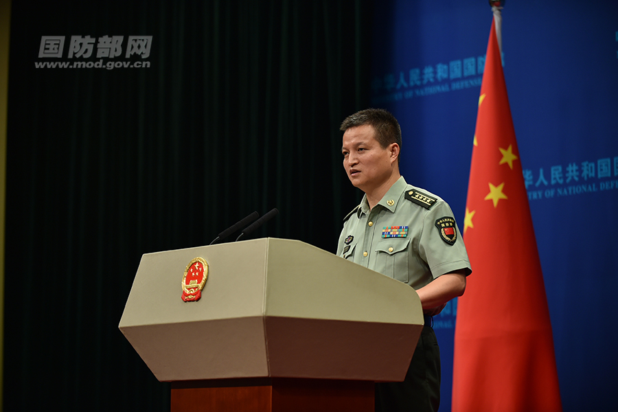 國防部新聞局局長、國防部新聞發言人楊宇軍就南海演訓活動答記者問。李曉偉 攝