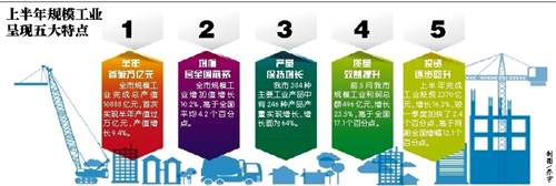 二是增幅位居全國前茅。上半年,全市規模工業增加值增長10.2%,高于全國平均4.2個百分點,增幅位居全國前茅。