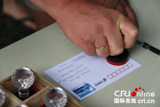 德國游客體驗“微笑亭”DIY明信片服務。攝影:趙妍