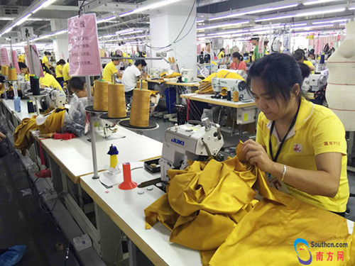 贏家時裝有限公司生產車間(南方網王瑭琳攝)