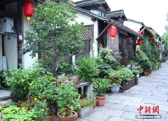 資料圖:8月10日,浙江杭州小河直街一居民住所門口的植物長得郁郁蔥蔥。杭州小河直街歷史文化街區(qū)地處京杭大運河、小河、余杭塘河三河交匯處。G20杭州峰會召開在即,小河直街也來了一次華麗“變身”成為花園街。 中新社記者 章天啟 攝