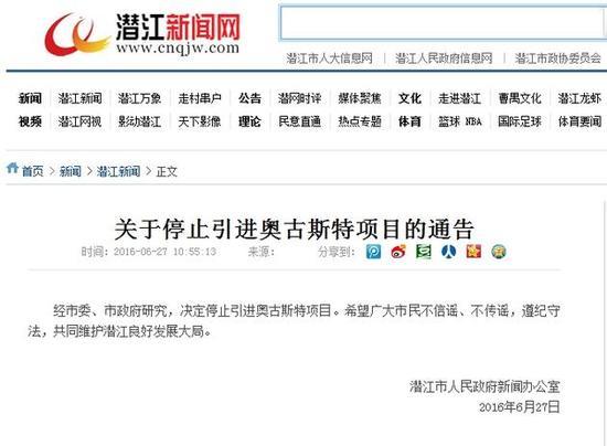 2016年6月27日上午,潛江市部分人員違反國家法律法規,在未向有關部門提出申請并獲得許可的情況下,非法采取利用微信群傳播請愿書,擅自上街游行,聚集請愿等方式,要求政府停止引進奧古斯特項目,擾亂社會公共秩序,造成了很壞的社會影響。