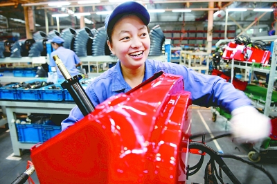 近年來,一拖集團借助“一帶一路”的東風,初步完成了全球營銷網絡的布局,成為中國制造在國際市場上的一張名片。圖為一名女工在位于河南洛陽的一拖集團第三裝配廠生產東方紅拖拉機。新華社記者朱祥攝