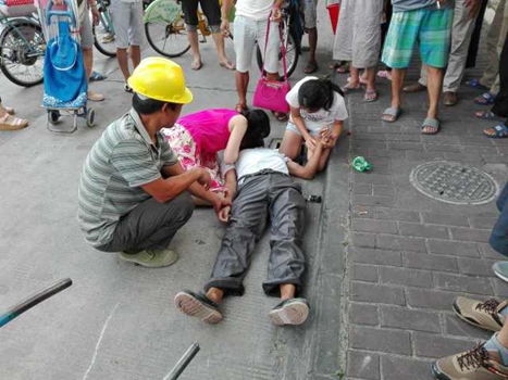 暈倒的男子名叫傅文滿,是一名湖南籍的建筑工人,那天早晨,他像往常一樣推著斗車去工地上班,沒想到在經過廣東佛山禪城文沙路時,突然覺得眼前一黑,倒地昏迷不醒。正趕著去單位上班的劉茂英看到路邊圍了一群人,但周圍并沒有車禍發生的跡象,她的第一預感就是可能有人突發疾病,走近一看,果不其然!
