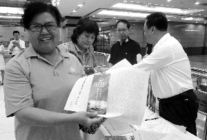昨天一大早,通州區選舉委員會玉橋街道選舉分會就在轄區萬春園開展了“人大換屆選舉”宣傳活動。現場的選民登記處前排起了長隊,“我已經當過好幾次選民了,覺得很光榮。”剛剛做完登記的轄區居民張秀蘭阿姨告訴記者。