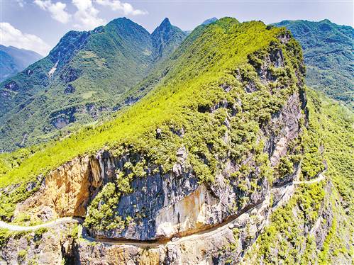 10月7日,巫溪縣蘭英鄉(xiāng)蘭英村,海拔近千米的周家坪老虎嘴“天路”。 記者 謝智強(qiáng) 攝
