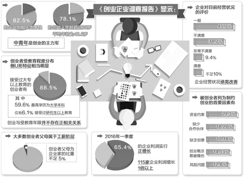 核心提示:《創業企業調查報告》由經濟日報社中國經濟趨勢研究院、中國社科院數量經濟與技術經濟研究所共同編制,報告全面聚焦我國創業企業的成長現狀及現實存在的問題。本期報告(2016一期)隨機從北京、上海、深圳、杭州、武漢、西安等6個城市抽取了1006個樣本,涵蓋信息技術、軟件和專業技術服務3個行業。透過本期報告,讀者不僅可以客觀了解當前創業企業的發展水平、創新能力和發展潛力,也能看到現階段我國創業者的整體水準、精神面貌,還能獲悉相關國家政策的實施效果和落實情況。報告為創業企業臨摹了一幅自畫像,也為讀者深入認識創業形勢提供了一個窗口——
