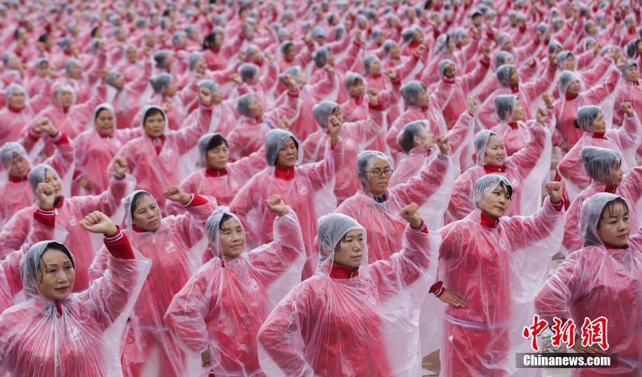 11月7日,在武漢分會場大媽、大叔們在雨中齊跳廣場舞。當日,在“西班牙斗牛舞”、“生命之杯”的樂曲中,5萬余名中國大媽、大叔們在北京、上海、天津、武漢等14個城市同跳一支廣場舞。一起挑戰最大規模排舞(多場地)吉尼斯世界紀錄。據活動主辦方介紹,同一時間、不同場地、同跳一支舞曲,挑戰最大規模排舞(多場地)吉尼斯世界紀錄,在全國多個重點城市一起舉行,是迄今為止全國范圍內發起的最大規模廣場舞活動。 張暢 攝