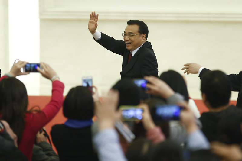 2016年3月16日上午,十二屆全國人大四次會議閉幕后,國務院總理李克強在人民大會堂三樓金色大廳會見采訪十二屆全國人大四次會議的中外記者并回答記者提出的問題。(資料圖)
