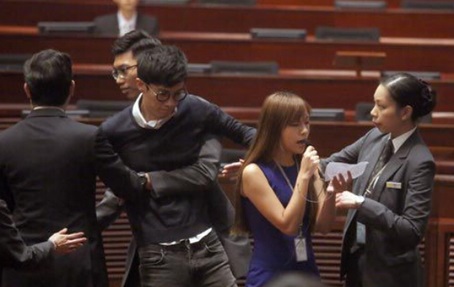 2014年非法“占中”時(shí),梁頌恒已工作5年,包括畢業(yè)之初任職中資的中郵電貿(mào)、網(wǎng)上團(tuán)購(gòu)公司“拉手網(wǎng)”,到成立“青政”前任職DGS Group,負(fù)責(zé)電腦、電視等電子市場(chǎng)營(yíng)銷策略的商貿(mào)經(jīng)理。他自稱曾在尖沙咀、金鐘、旺角和銅鑼灣“占領(lǐng)區(qū)”輪住,隨后在去年1月,他離開(kāi)職場(chǎng)集結(jié)一批人創(chuàng)立“青年新政”,全力從政。至于游蕙禎,2012年曾到香港中文大學(xué)參與“反國(guó)教”罷課行動(dòng),2014年“非法占中”時(shí),她正在香港會(huì)計(jì)師公會(huì)任文職,每天下班都去金鐘參與“占中”,曾徹夜留守旺角“占領(lǐng)區(qū)”。2015年1月,游蕙禎加入梁頌恒創(chuàng)辦的“青年新政”。