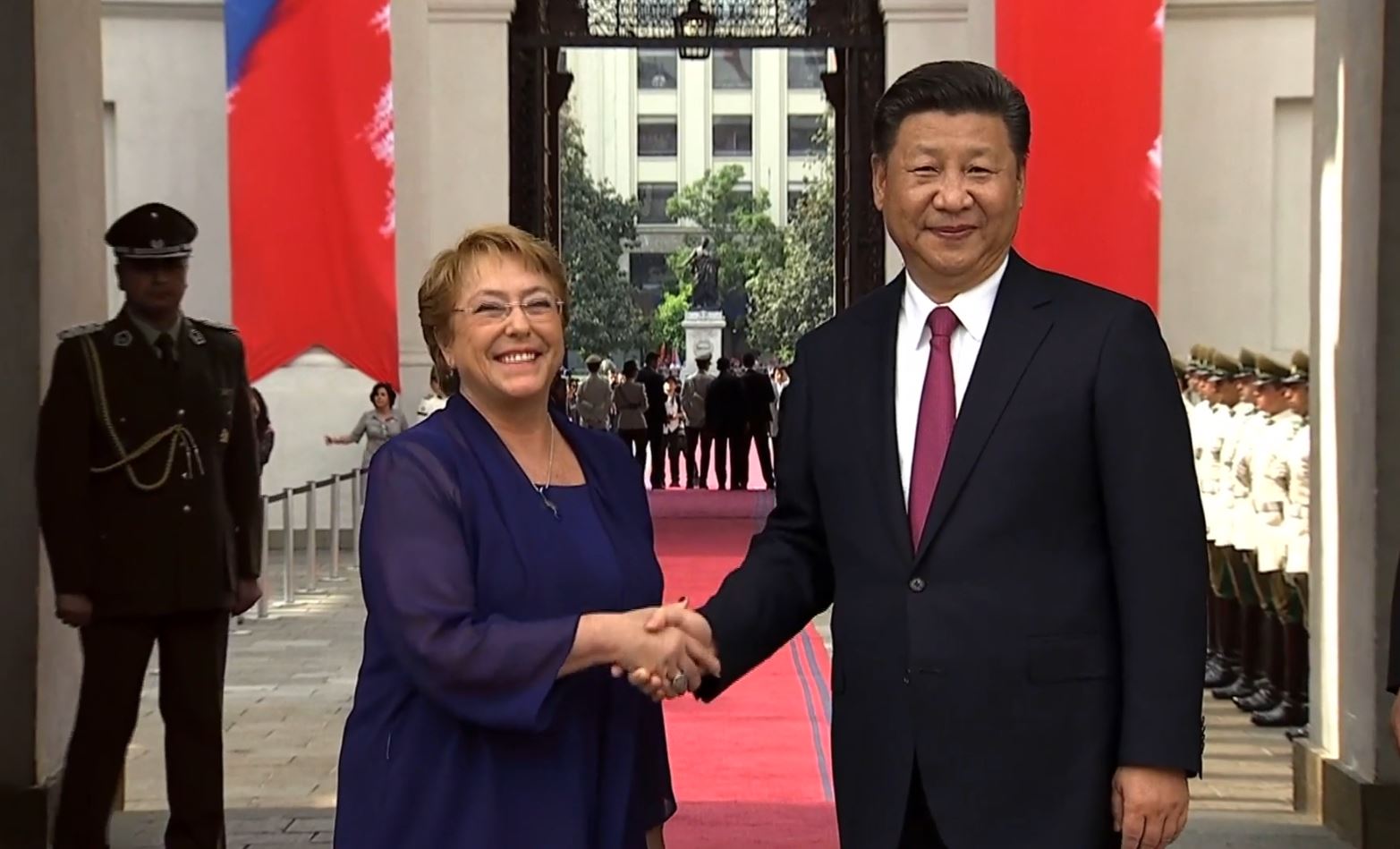 當地時間11月22日16:30 習近平出席智利總統巴切萊特舉行的歡迎儀式