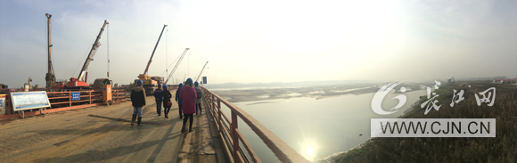 藕長洪介紹正在修建的青山長江大橋 李贏攝