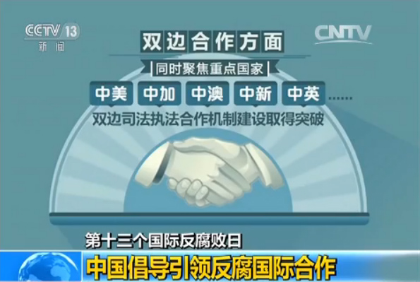 央視網消息:今天(9日)是聯合國確定的第十三個國際反腐敗日,今年的主題是“聯手反腐敗,實現和平、發展和安全”。中央反腐敗協調小組國際追逃追贓工作辦公室公布了我國在反腐敗國際合作方面取得的最新成果。